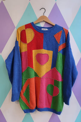 Vintage 80s Geometric Colorblock Sweater