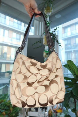 Vintage Coach F15067 Signature Jacquard Hobo Bag in Khaki and Brown