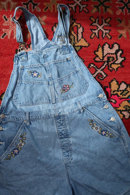 Vintage 1990s Denim Embroidered Overall Shorts