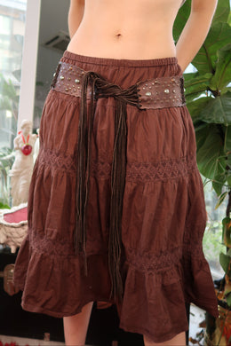 Vintage Brown Leather Studded Fringe Tie Belt