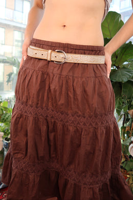 Vintage Dark Brown Leather Belt with Cross-Laced Detail