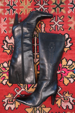 Vintage Black Leather Studded Knee-High Boots