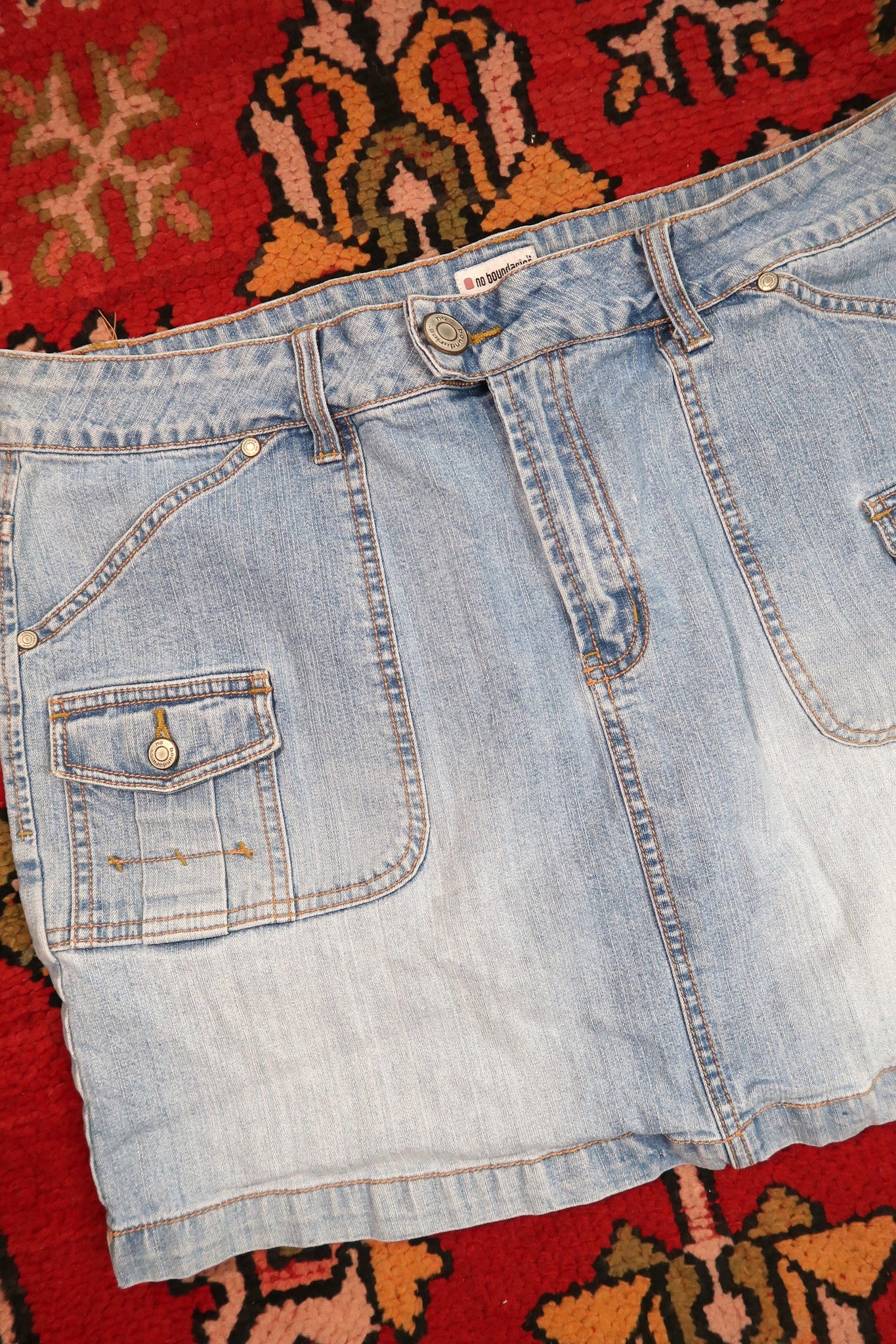 Vintage 2000s Light Wash Denim Cargo Mini Skirt