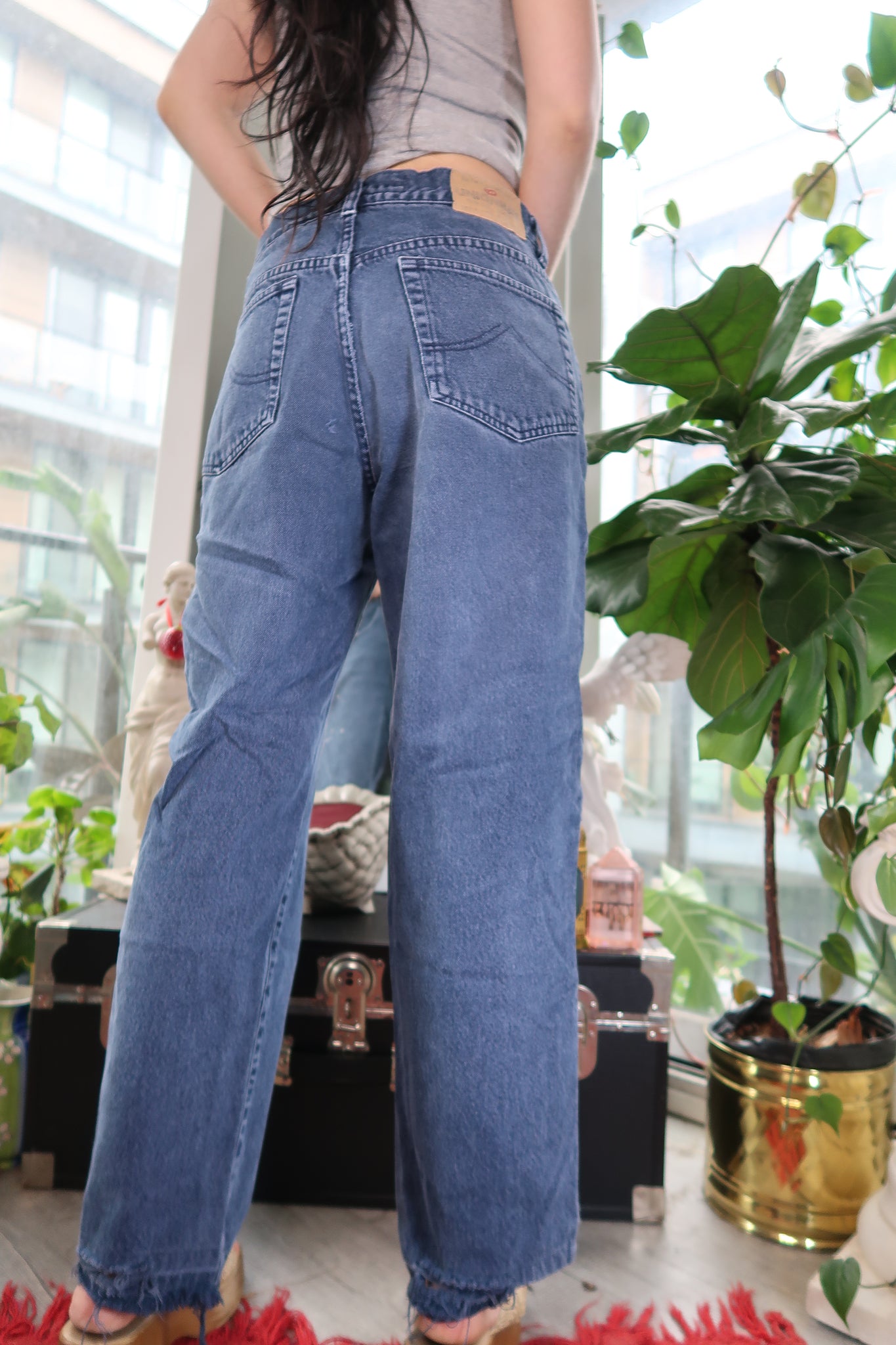 These vintage Union Bay jeans channel true 90s and early 2000s casual denim style with a relaxed straight-leg fit and classic mid-wash blue tone. Made from durable cotton denim, they feature a mid rise, five-pocket design, and zip fly with button closure.