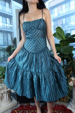 Vintage Y2K Aqua Blue Crinkle Tie-Dye Midi Dress