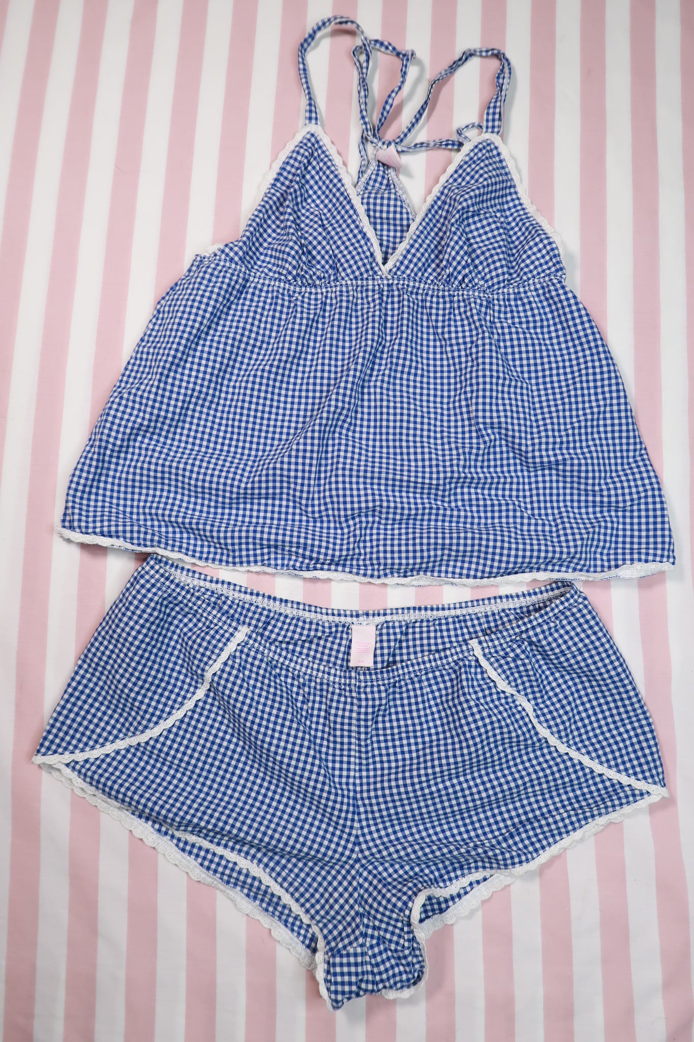 2000s Victoria’s Secret Blue Gingham Camisole & Shorts Set