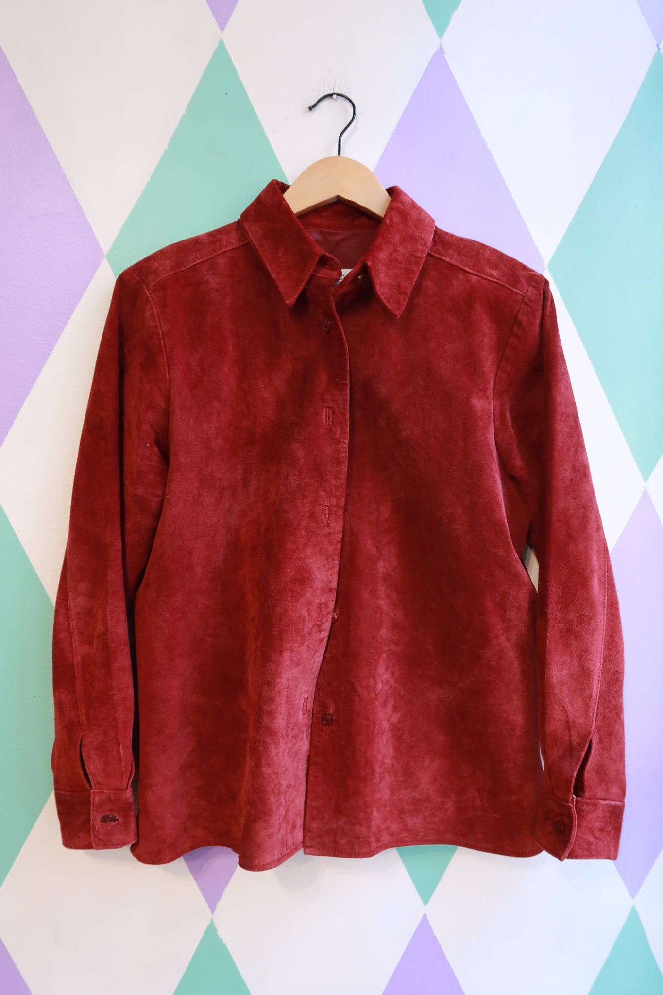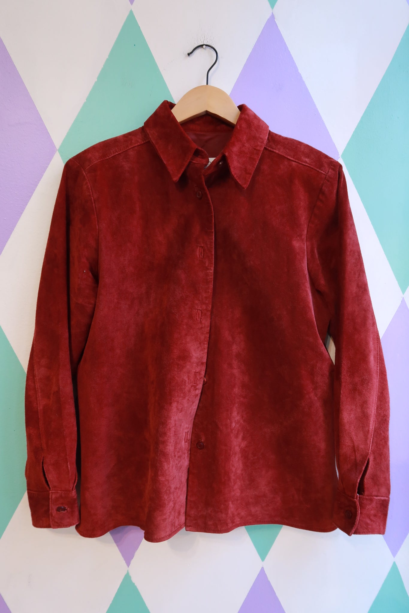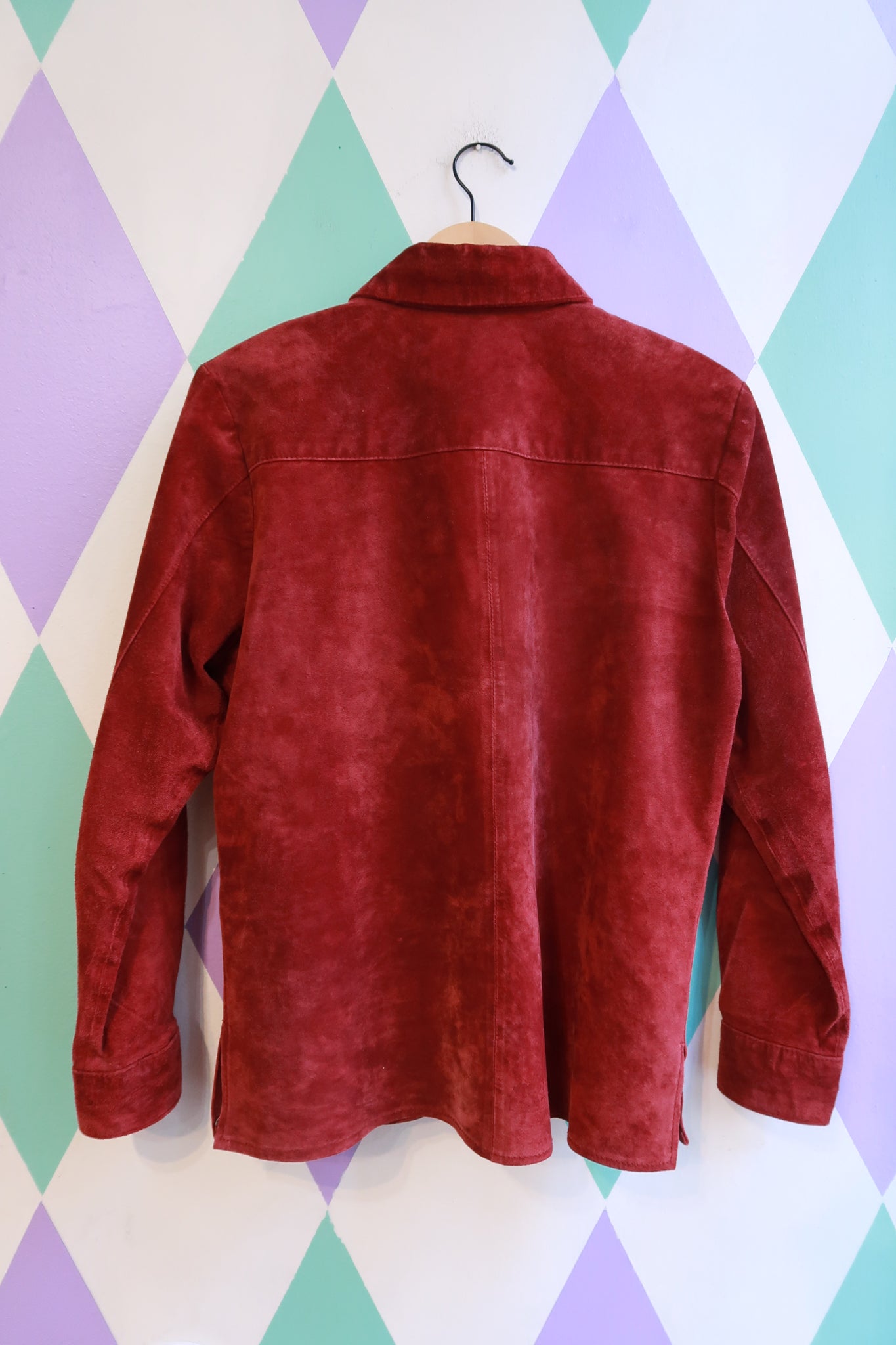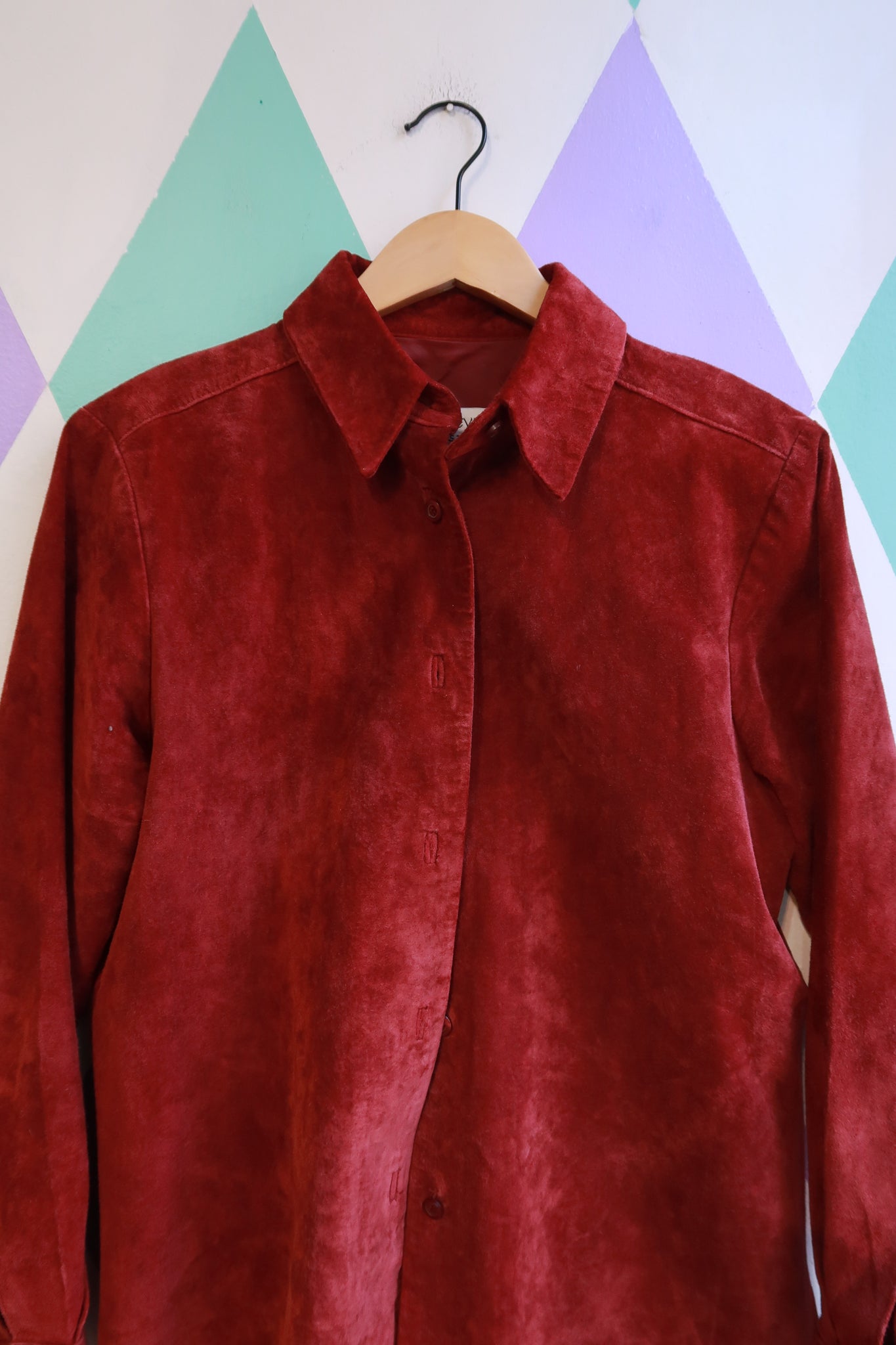 Vintage Burgundy Red Suede Button-Up Shirt Jacket