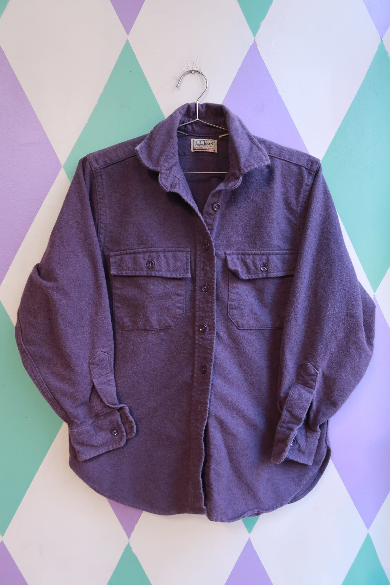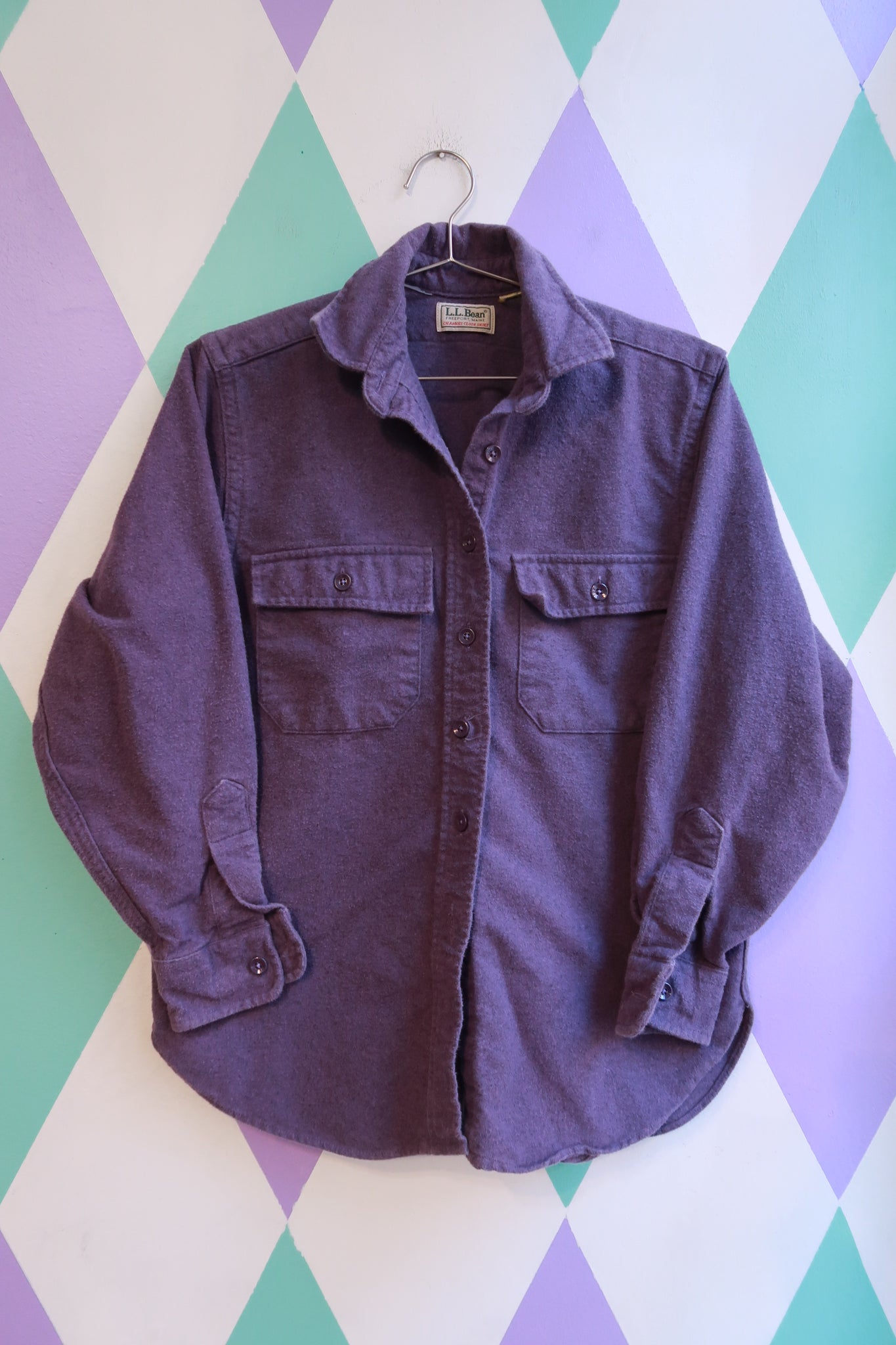 A classic vintage LL Bean chamois cloth button down in a rich dusty plum tone, built from thick brushed cotton that feels soft, warm, and broken-in. This piece has that signature outdoors heritage look — structured collar, full button front, and dual flap chest pockets — giving it the perfect balance of rugged utility and cozy layering staple. The chamois fabric adds subtle texture and weight, making it ideal as a shirt, overshirt, or lightweight jacket. Timeless 90s outdoor style that pairs effortlessly with denim, cargos, or layered over tees for an easy vintage workwear vibe.