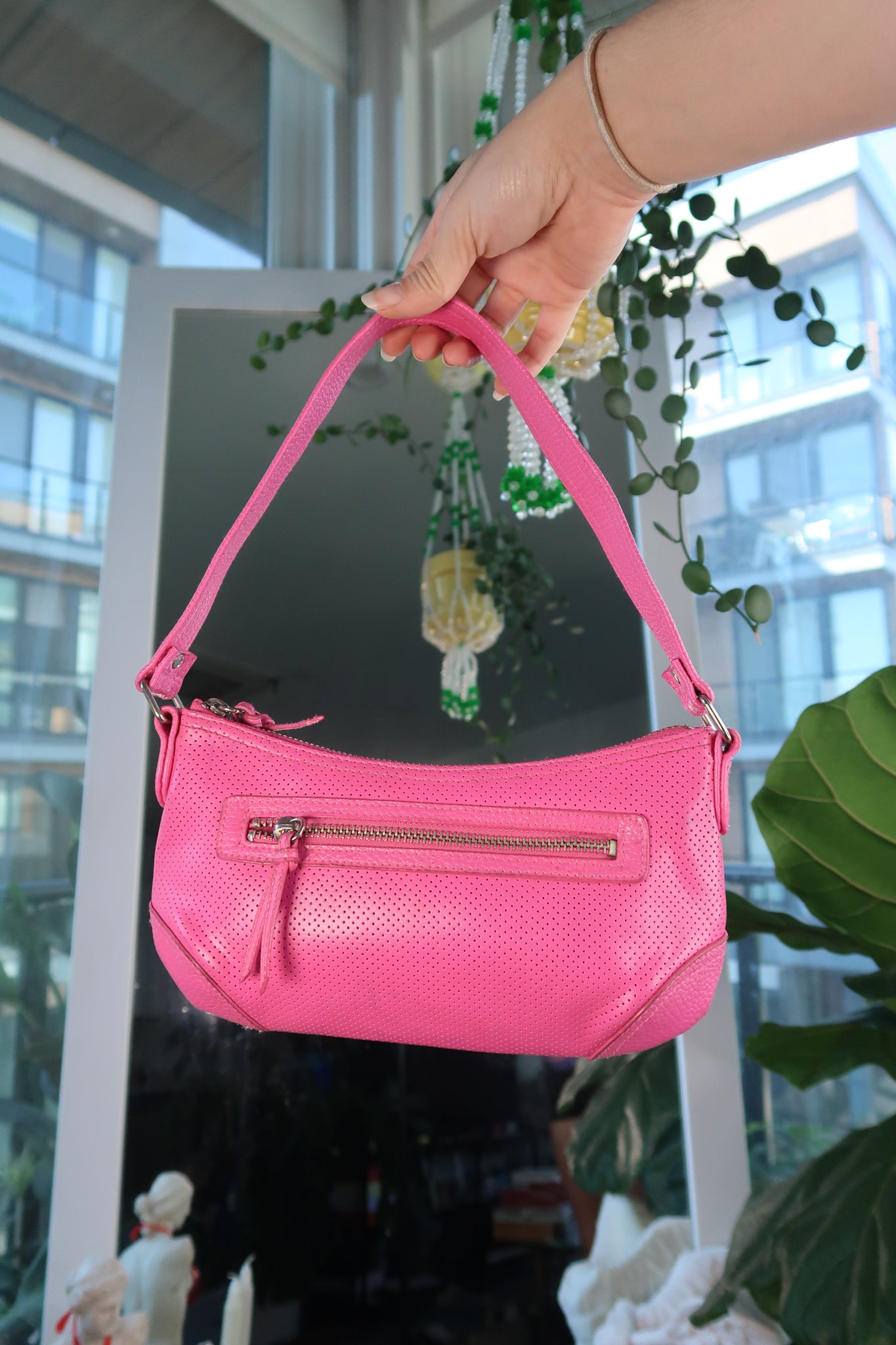 Playful and iconic, this Y2K pink faux leather shoulder bag brings instant early-2000s energy to any look. Designed in a sleek baguette silhouette, it features a bubblegum pink exterior, silver-tone zip pocket, and an adjustable shoulder strap for that effortlessly cool, off-duty vibe.