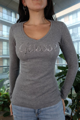 Vintage Y2K Guess Sequin Logo Long Sleeve Top