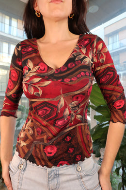 Vintage 2000s Vintage Floral Print Top with Split Sleeves
