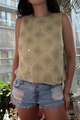 Vintage Silk Geometric Sequin Top