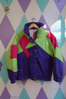 Vintage 80s Colorblock Ski Jacket — Purple, Lime Green & Hot Pink