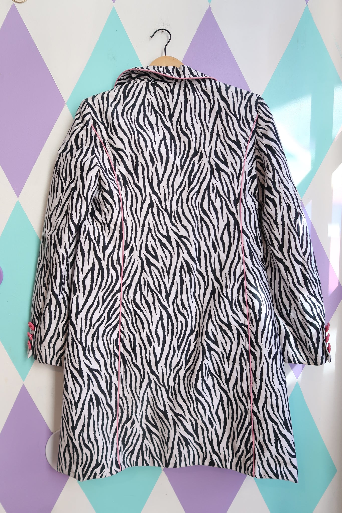 Vintage 2000s Zebra Print Coat with Pink Trim and Buttons